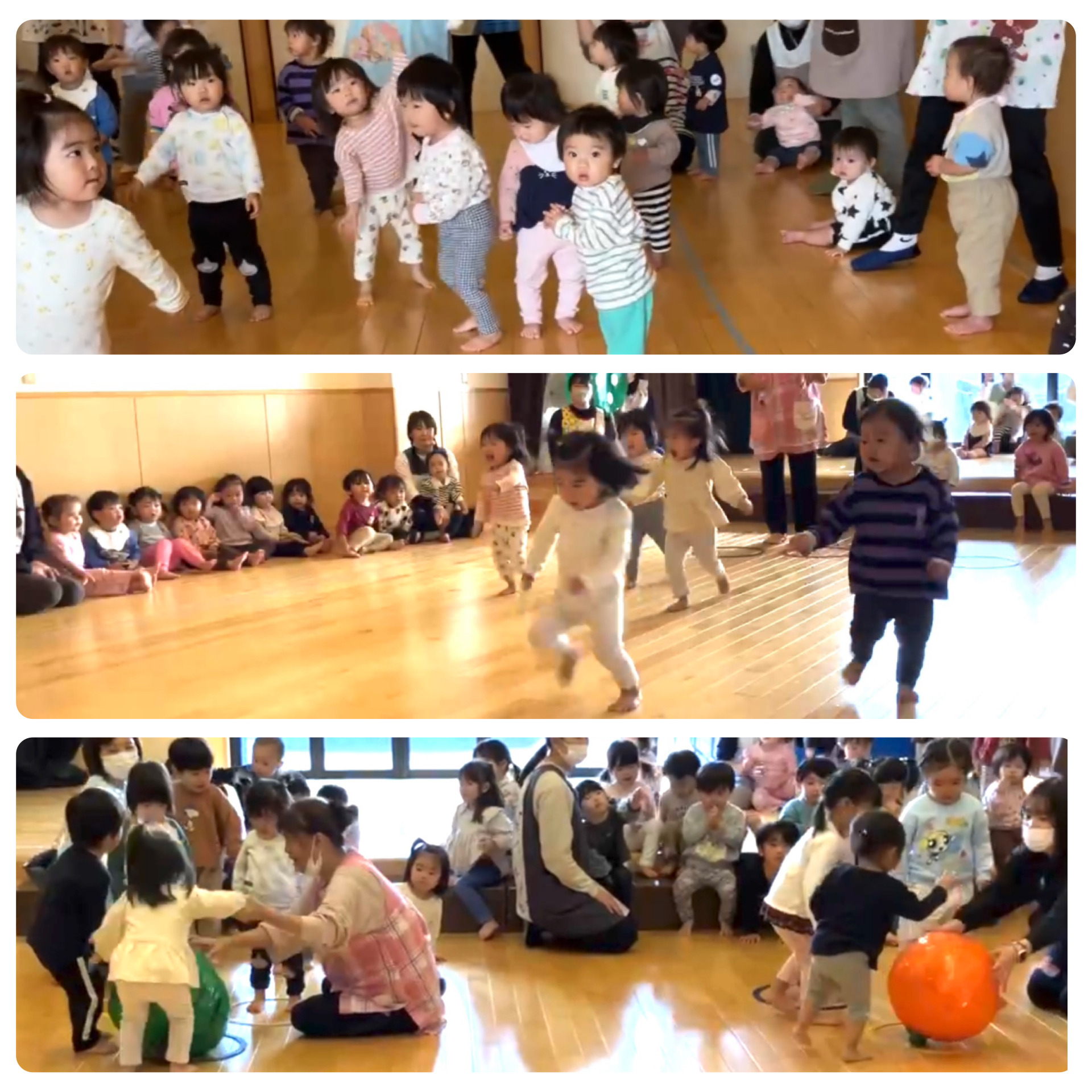 保育園のホールを使用し、ミニ運動会を開催しました。