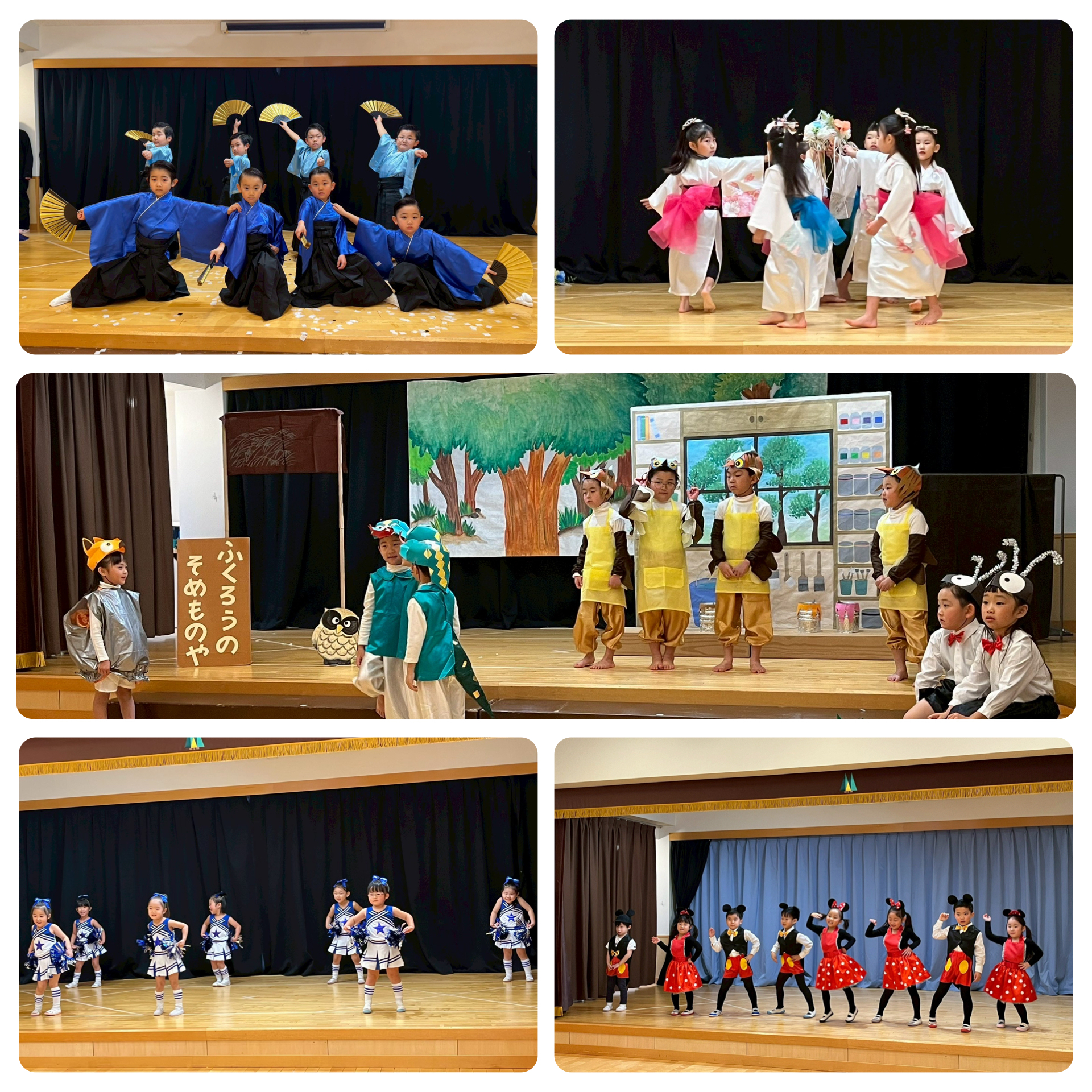 12月6日にお遊戯会がありました。ひまわり組さんはお遊戯と言葉遊びを、さくら組さんはお遊戯と合奏を、ゆり組さんはお遊戯と劇を保護者の前で発表しました。可愛い衣装で楽しそうに披露してくれて、みんなキラキラしていました🌟