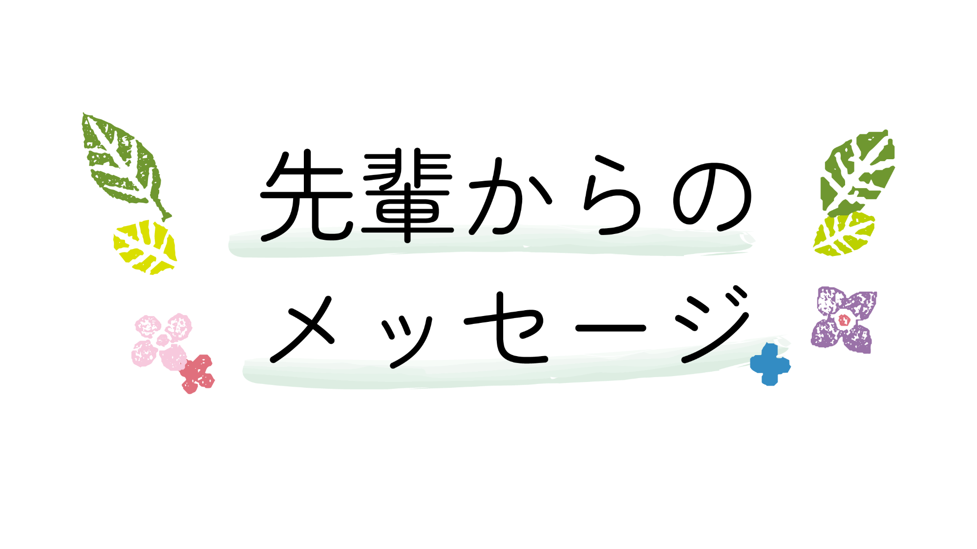 わからないことだらけの一年目ですが、何でも質問しやすい環境をつくってくださる温かい職場です。実習の時は不安もありましたが、困ったときは先生方が優しくフォローしてくださり、毎日があっという間でした。
