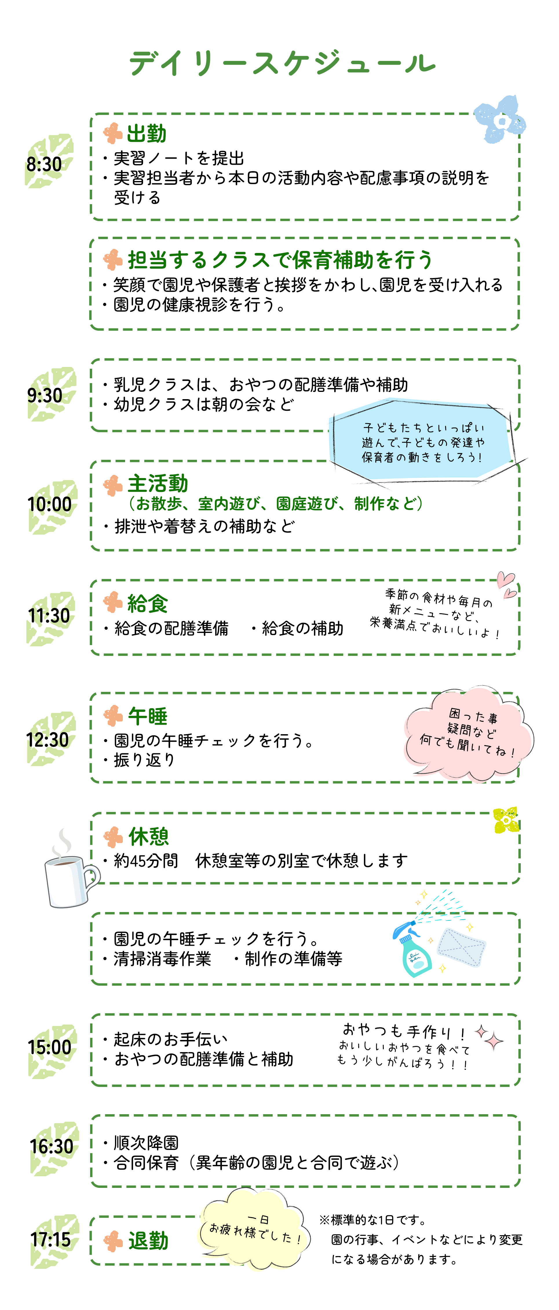 子どもたちや先生方と笑顔の絶えない毎日を過ごす中で、 保育の楽しさややりがいを改めて実感しています。